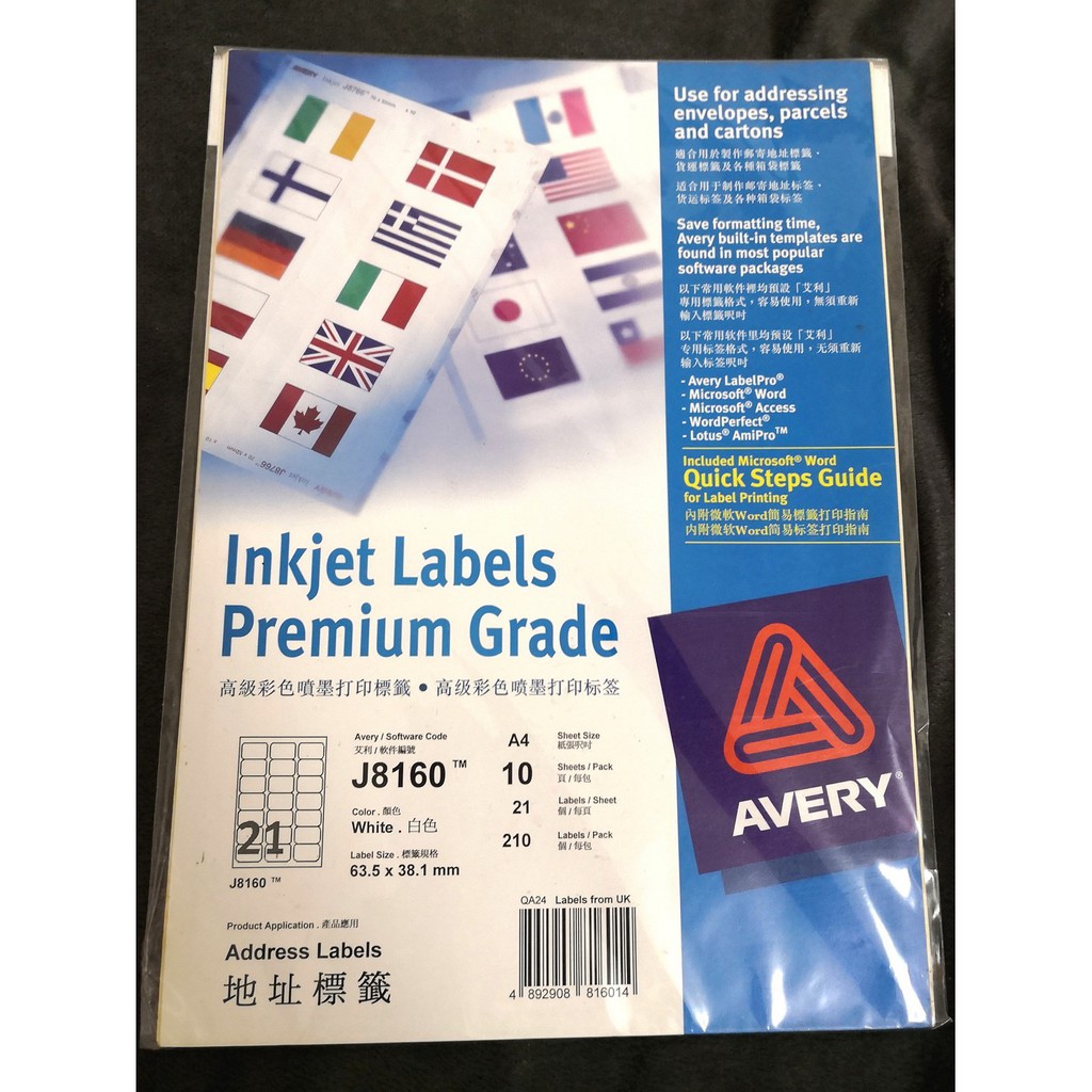 White labels - Lyreco UK Inkjet labels (16) Manual labels (8) See all. Our offers . locally made (71) ... Avery J8160-25 Labels, 63.5 x 38.1 mm 21 Labels Per Sheet, 525 Labels Per Pack Ref: 2.183.868. Login as a customer or register for an account. Login / Register Avery L7159-100 Labels, 63.5 x 33.9 mm, 24 Labels Per Sheet Ref: 111.732. Login as a customer or register for an account. Login / Register … Avery templates 8160 - dobreceny.info Word Template for Avery J8160 Address Labels, 63.5 x 38.1 mm, 21 per sheet . Supported Products. Quick Peel Address Labels with Sure Feed – 936082; Quick Peel Address Labels with …Avery ® Address Labels Template with Easy Peel ® for Inkjet Printers, 1" x 2⅝" 8160 Avery Design & Print Add logos, images, graphics and more Thousands of free customizable templates Mail Merge to quickly ... Avery Label Sizes | Q-Connect Labels Guide - AOS Online Avery Labels are guaranteed JamFree with outstanding print quality. Eco Labels are made from well-managed forests and are recyclable as part of paper waste. The QuickPEEL range offers a time saving solution on peeling time as well as being compatible with the Royal Mail Smart Stamp system. Avery Labels also offer a free software template wizard ...