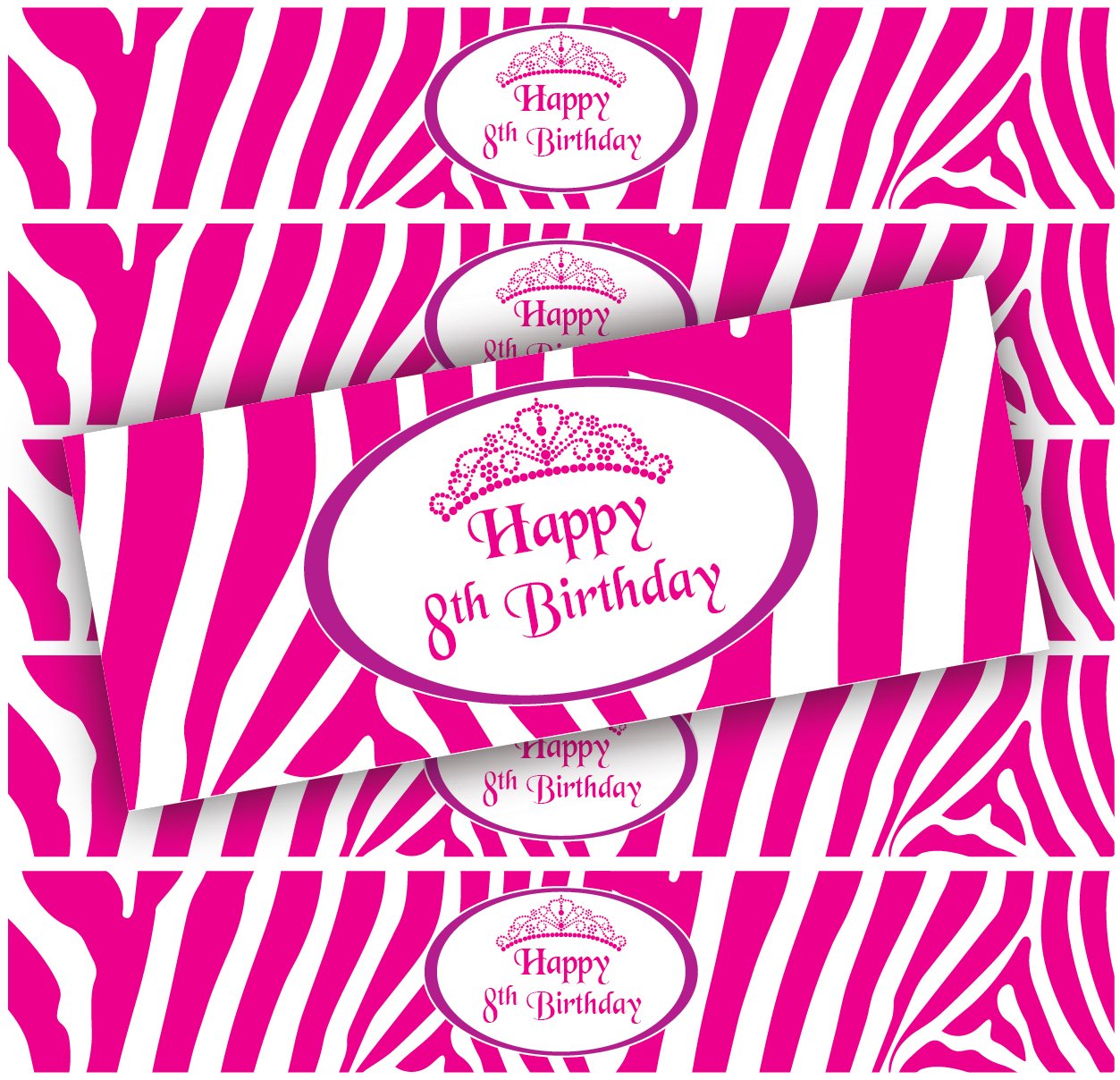 24 Pink Zebra Girl's Birthday Waterproof Water Bottle Labels (8th Birthday)