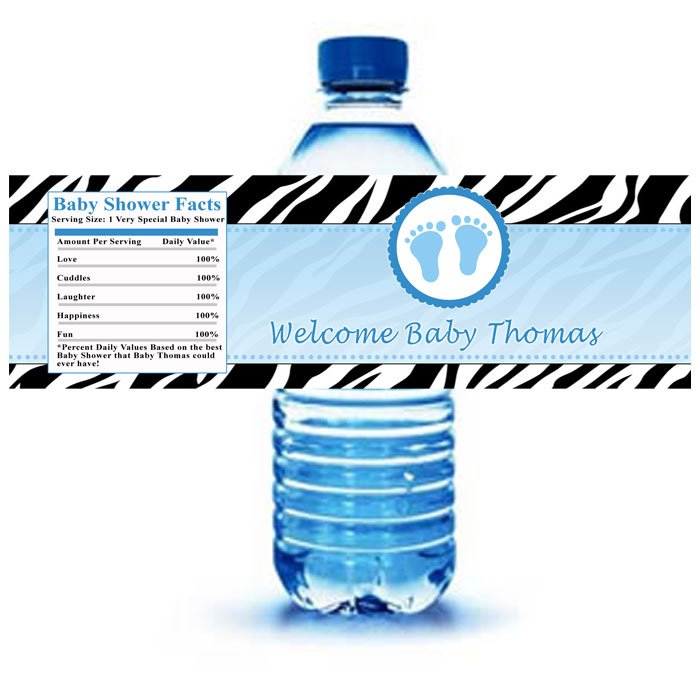 Blue Zebra Baby Shower Water Bottle Labels | The Candy Bar ...